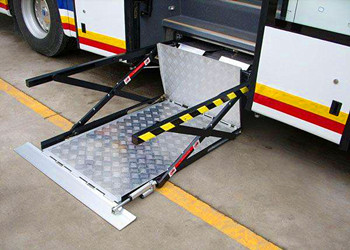 輪椅登車平臺的伸縮和外擋板的操作為電驅動。上下升降為液壓驅動。所有功能均由手持單元控制或可選遙控操作。輪椅升降機可安裝在各種輕型客車、城市客車和旅游客車的側門下??筛鶕囕v門的尺寸進行調節導板尺寸。