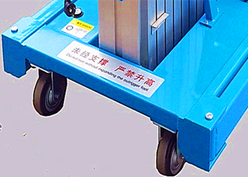 簡介:鋁合金升降機,單桅,雙桅,多桅單人雙人操作鋁合金升降機,由一組鋁合金桅柱組成,升降高度一般在4-24米之間,載重量為100-200KG。 特點:鋁合金升降機,又叫鋁合金升降梯,整機重量輕,機動性好,適合單人操作;特制的桅柱間導輪裝置升降平穩自如;結構緊湊,運輸狀態尺寸小,可進入一般電梯的轎廂以及能順利通過門洞和狹小通道;雙重保護的支腿結構,工作更安全,且可貼近工作面升降作業。 應用:該系列產品為室內型,廣泛適用于星級酒店、大型超市等各行業大廳、廠房內的高空作業,如機具保養、油漆裝修、調換燈具、清潔保養等。